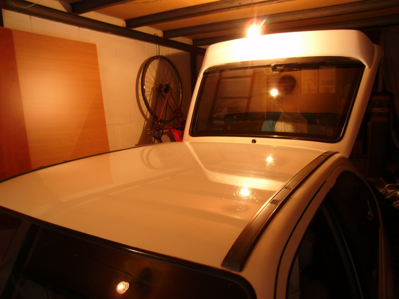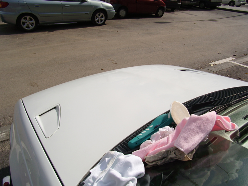 Y ahora una fotillo del techo pulido (por mi padre, la foto y el pulido) mientras yo limpiaba la moqueta del maletero y la parte donde va la rueda de repuesto (que estaba a 1 con poco de presión...)