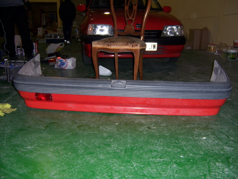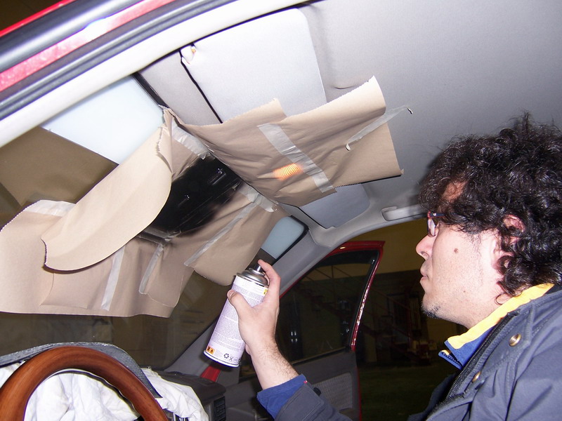 Ya que quitamos el paragolpes trasero para el corte, pues limpieza y pintura al canto y ya que quitamos el trasero... pues a quitar el delantero y listo... y ya que estaba todo pues a pintar las guías del techo.