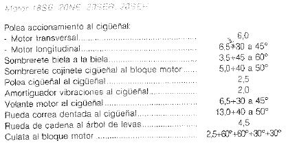 wenas, pa la reparacion de mi motor 8v seh, necesitare los pares de aprete de: culata y caskillos de biela, el orden de aprete de tornillos de culata, amos, todos los pares del motor,,,,,,,,alguien los tiene??????' ;)