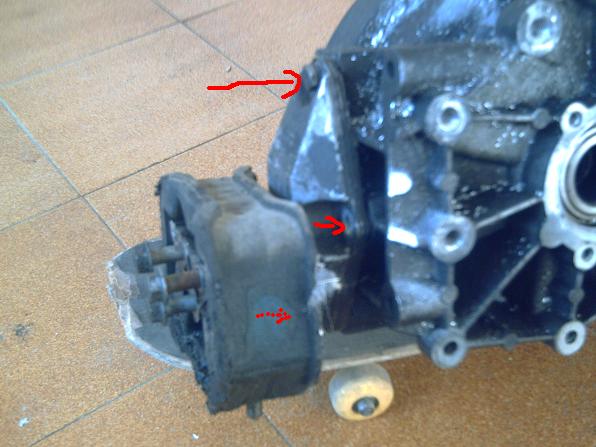 Ya se puede poner el taco, pero surge otro problema: no atornilla a fondo, porque pega con dos esquinitas de caja de cambios. Solucion le doy el corte: