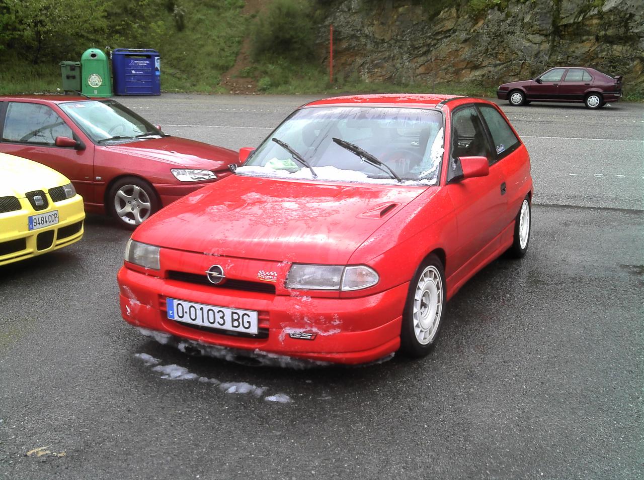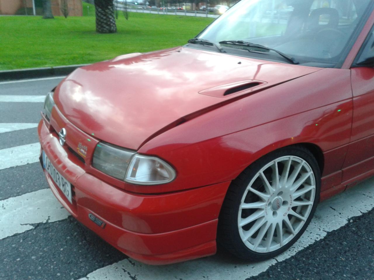 en enero tuve un pequeño percance, le endiñe no muy fuerte a una scenic por detras en un ceda. típico q parece q el tio pasa y tu miras para pasar después y cuando te das cuenta el tipo clavo el freno porque le apetecio... el caso es que el frente se doblo y el capo y rompieron los faros. no fue mucho pero ya no pasaria la itv sin una reparación un poco seria de chapa. un mes antes había pillado un astra 16v para reparar de culata (ya le hago otro post luego xD) y poco mas, muy barato asi que ya lo vi claro. tenia todo listo desde el verano para calzarle un saab b204l al rojo jejeje