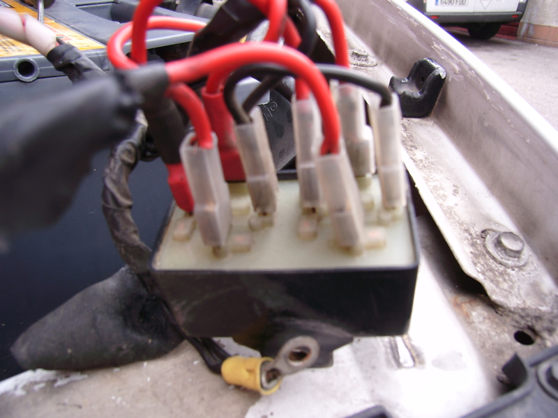 Yo la extirpé y modifiqué quitando unos conectores redondos que me sobran, metiendo todos los cables en tubo corrugado, cogiendo un tornillo de masa en el chásis, metiendo el rele y fusible en una caja aislada de astra g y llevando para el salpicadero el cable negro que habrá que conectar al mando de luces.