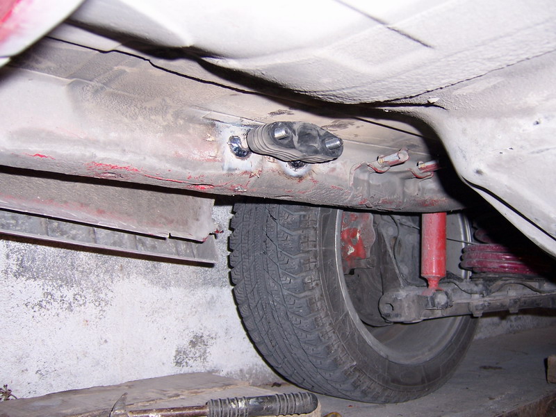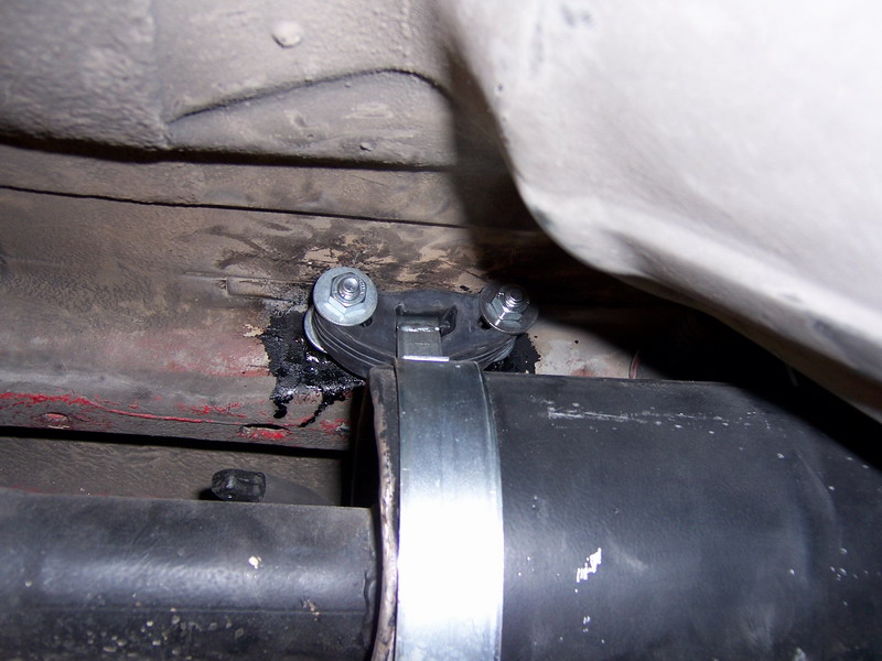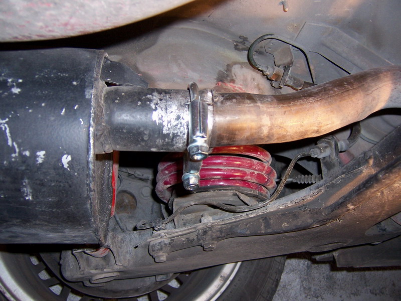 - La unión del silencioso con la línea del coche estaba soldada y reforzada con una "brida" de esas metálicas en forma de U con tornillos y pasador (parecida a las de montar antenas en mástiles).