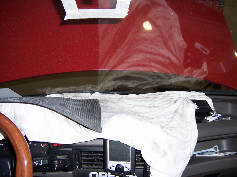 El montaje del espejo interior fotosensible por fin está acabado, para ello se usó Araldit bicomponente para cristales en el taco metálico, luego se encintó y empapeló el cristal marcando la forma del embellecedor. Como la cinta rechupó tinta negra, al día siguiente con una cuchilla y bastante pulso tocó retocar.