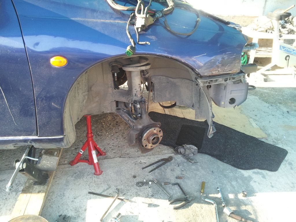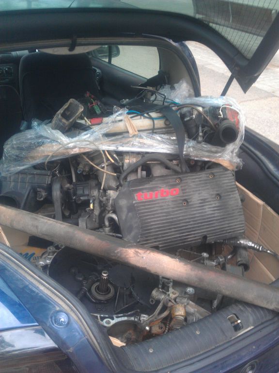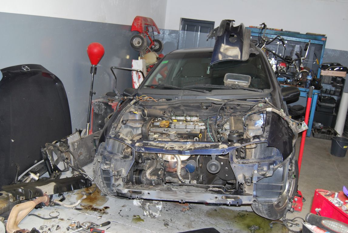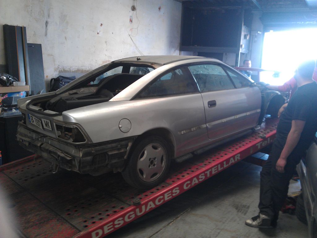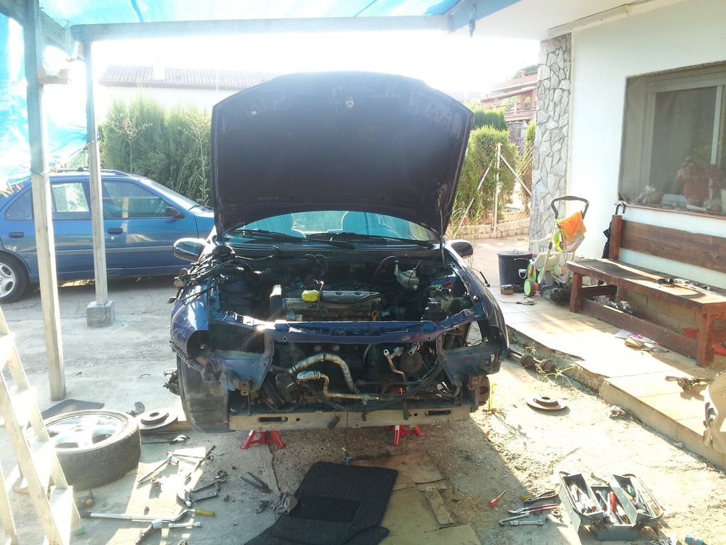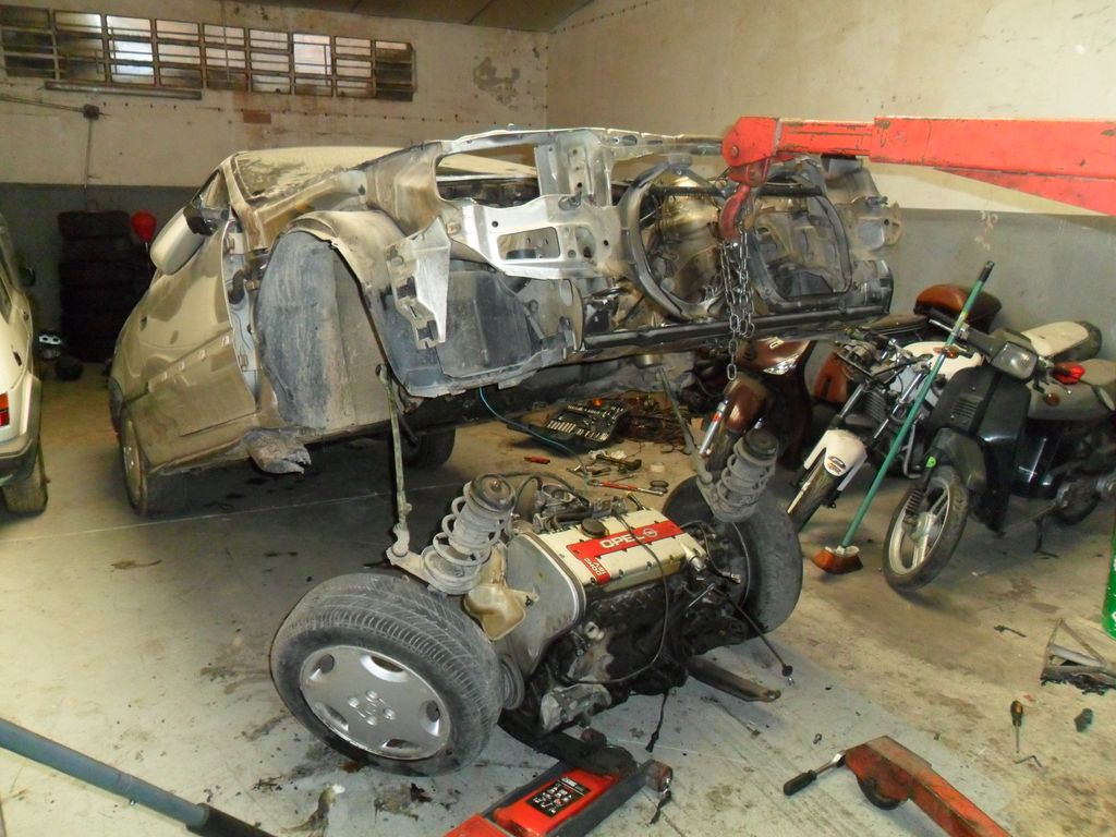 Compré un calibra 2.0 16v del 92 dado de baja por 500€, con documentación y entero. El motor tenía buena pinta, pero no pudimos arrancarlo por un problema en el clausor (no llegaba +12v a llave). Total, que tengo el coche, tengo sitio, tengo tiempo y ganas me sobran! Así que me lío la manta la cabeza y me tiro al demontaje del calibra.