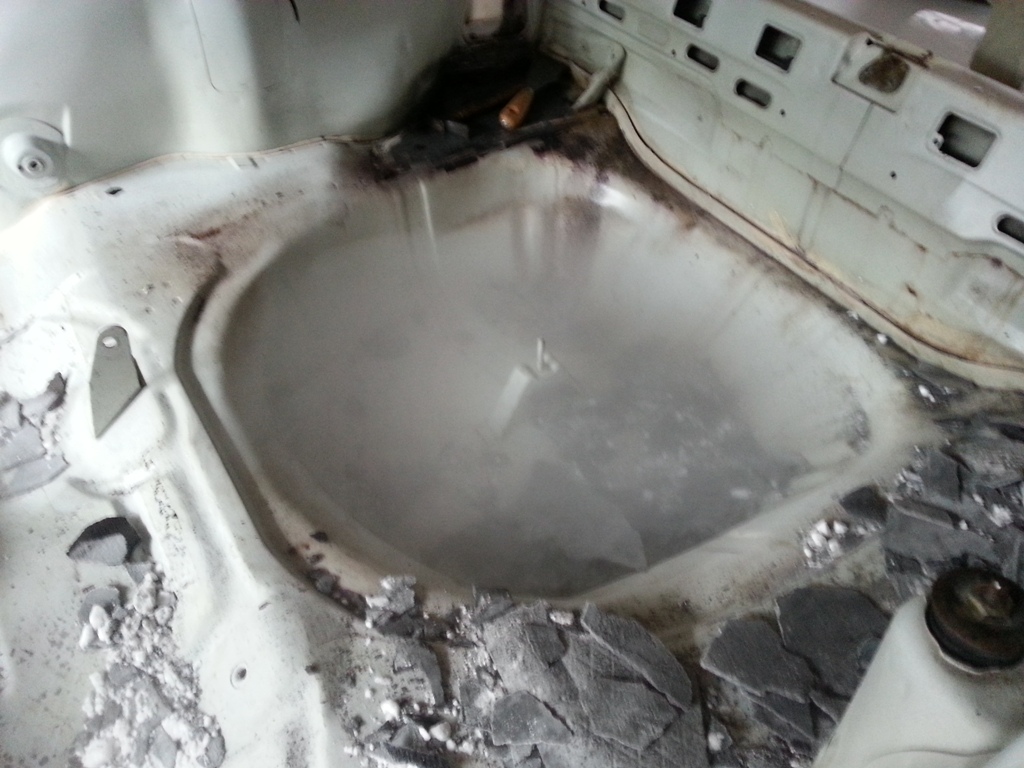 Bien... lo primero como era lógico fue desarmar...quitar defensa , faros, radiadores...etc , para poder sacar el motor del astra y ponernos con el vano del coche , a fin de resoldar y pintar antes de su nuevo motor.