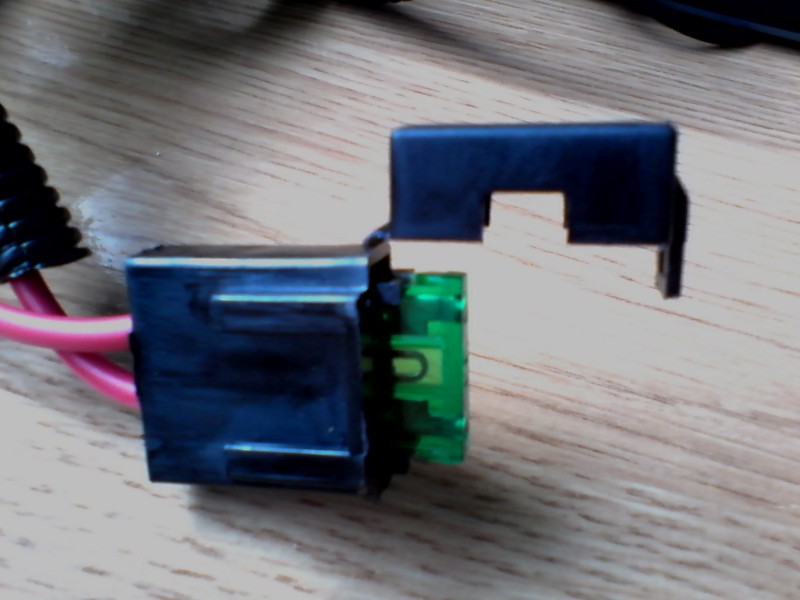 Aqui va el conector que hay que conectar a la instalacion original del coche. Hay que conectarlo solo a uno de los 2 conectores de bombillas originales del coche. Mediante este conector "lee" que las luces estan encendidas y hace que se active el relé.
