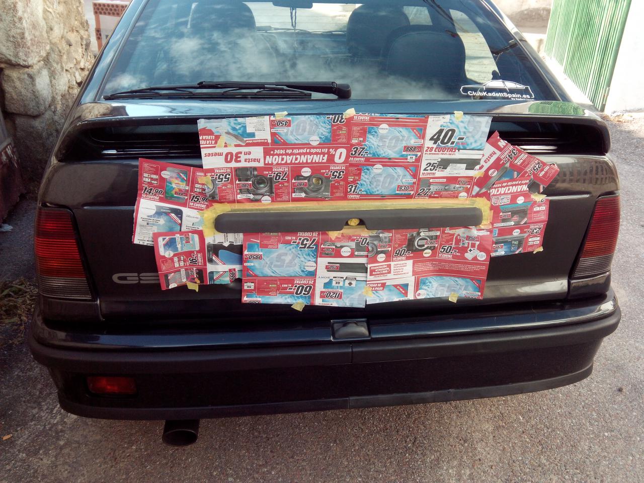 La verdad que lleva muy poco tiempo desmontar esos plasticos como para empapelar la zona, sobre todo el tirador del maletero, ya que alguna grapa suele morir en el intento al sacar las taloneras