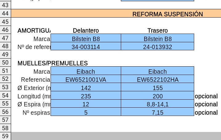 si me vendria bien la referencia de la suspen!! kuando tuviste el coche en el taller aproveche para cojer un par de referencias ke me hacian falta jejeje bobina y tal, se agradece!!