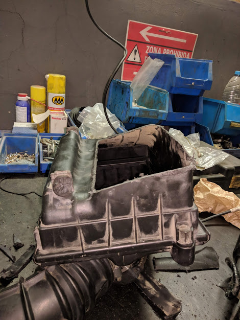 Como se puede ver, el coche ha pasado mucho tiempo a la intemperie y necesita cuidados. Además sufrió un percance con la instalación eléctrica en forma de fuego. Por suerte lo sofocaron rápido y se salvó para llegar a mis manos.