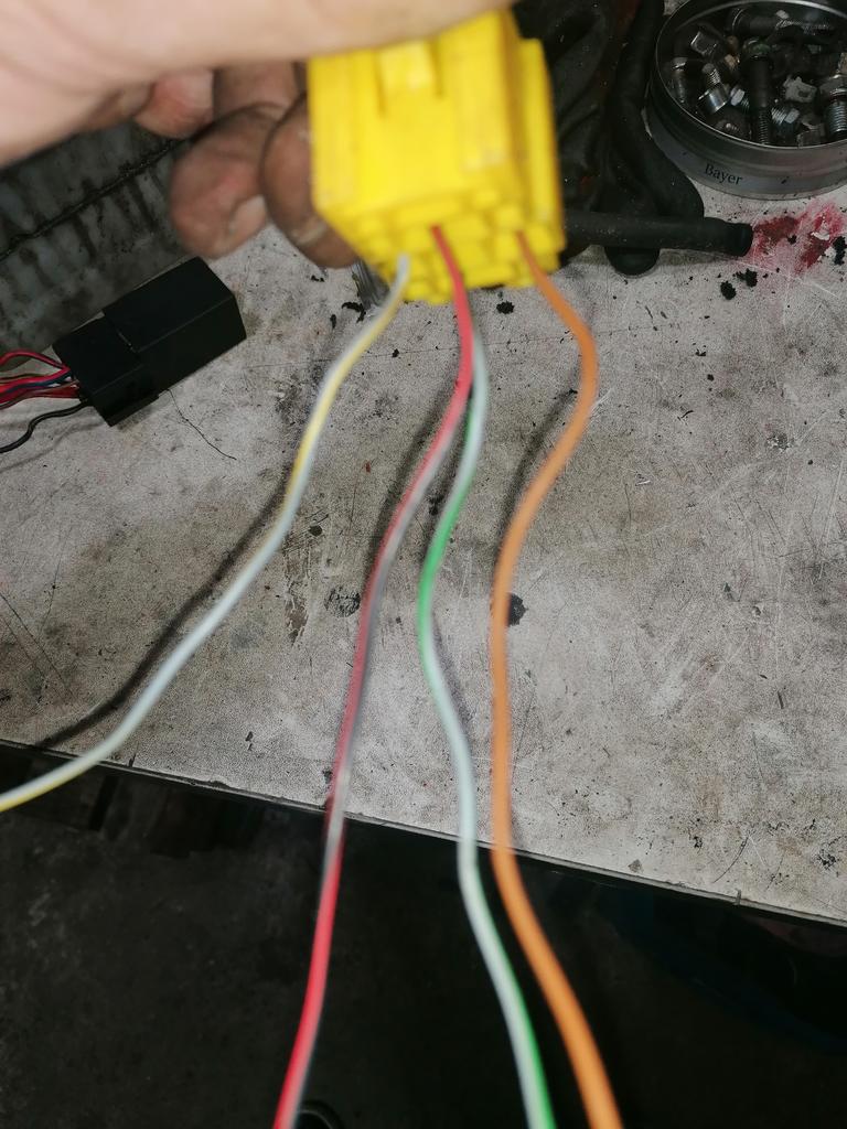 El testigo del check engine es el pin 17 de la centralita, cable Marrón-Azul, que va al cuadro LCD vía conector X5 (conector de ramal motor).