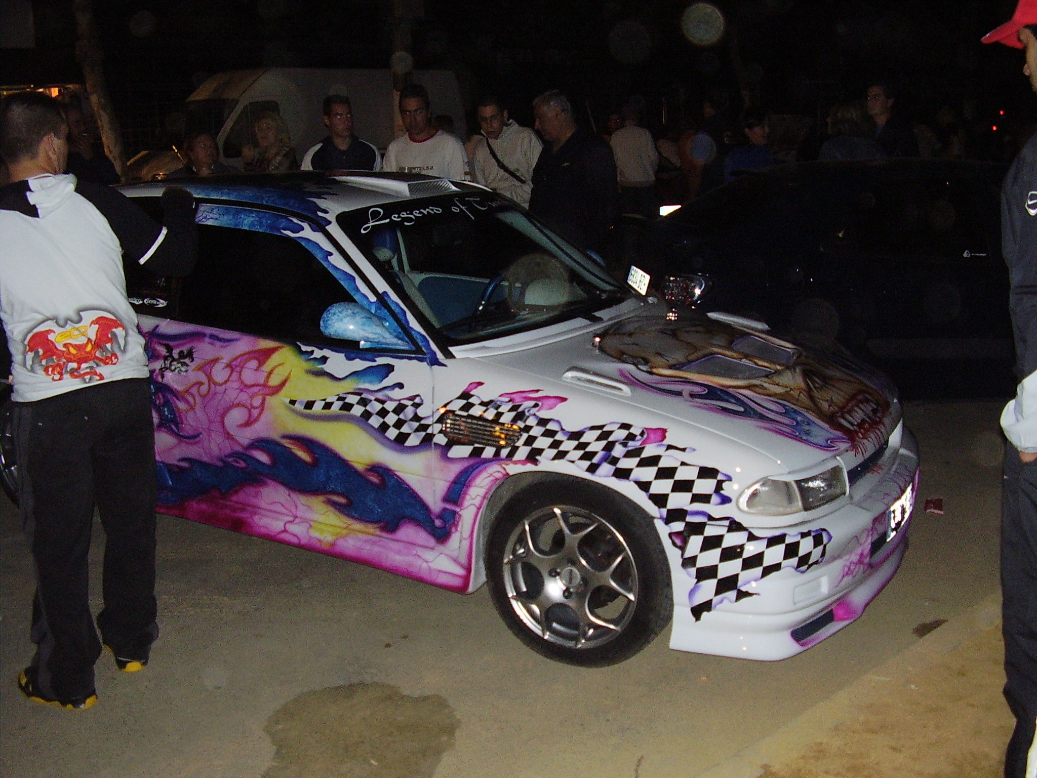 bueno, a mi tampoco me gusta, pero debo admitir que tiene mucho curro el auto, de eso se trata es una concetracion tuning ahi cuanto mas cargado casi que mejor, a nosotros nos gusta mas un auto de calle con algunos detalles como suspension y escape y pocas cosas mas, pero en una concentracion tuning van a lo bestia. y si le quitasemos las pinturas e lo dejasemos blanco seria otra cosa asi que nada, cualquiera que le ponga curro al auto tiene mi voto positivo, aunque lo pinte asi.