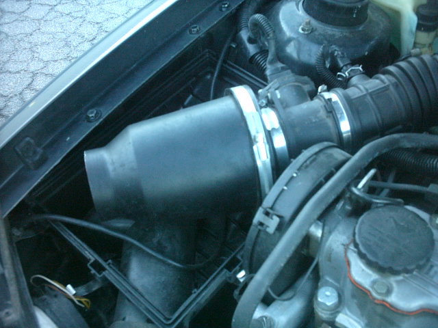 te dejo una foto de como esta en mi coche, el cono era rojo pero no me gustaba que cante tanto al levantar el capo asi que lo pinte en negro
