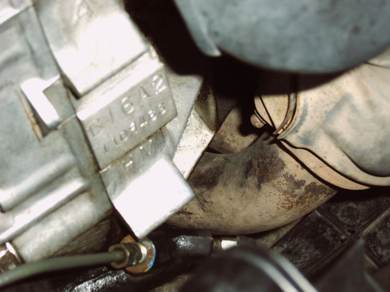 Por esta zona registraba el mayor índice de pérdidas, dado que tenía una fuga por la tapa del árbol de levas, ha sido una de las más beneficiadas... podeis leer la referencia de motor, B16A2... el bueno! Ya me gustaría a mi que fuera un B16B o un B18C5... 185 y 190 cv respectivamente... Se puede ver el bombín de embrague aquí, puesto que es hidráulico.