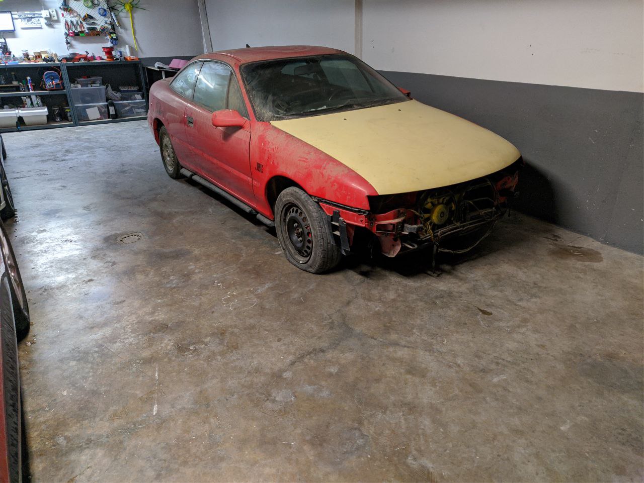 Iba buscando un coche antiguo barato para restaurar poco a poco en mi cochera y al final me han regalado un calibra 16v (c20xe si no me equivoco no?) con mas horas de restaurar de las que me gustaría, pero bueno, poco a poco iré arreglándolo, el coche se paro hace 5 años funcionando y el anterior dueño (amigo mio) empezó a desmontarlo para pintarlo por completo, interior, vano motor, todo... pero le salio trabajo y el pobre coche quedo abandonado y desmontado.