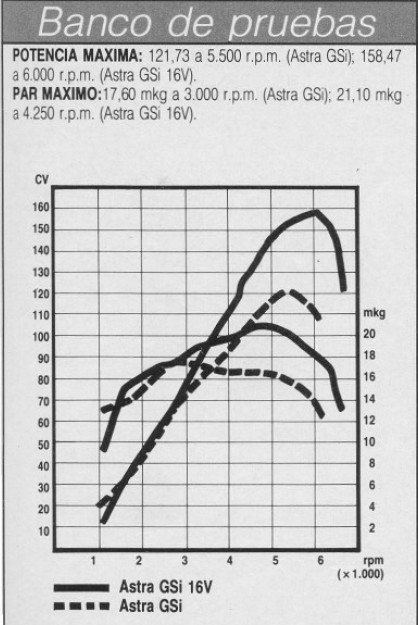 Creo que lo escribí aquí hace tiempo, pero como para acordarse ahora, xDDDD: en la prueba comparativa entre el Astra 8v y el 16v, en la revista AUTOMÓVIL, de diciembre del 91, creo, al meter cada uno en el banco de potencia les daba, el 8v, 122cv(no estoy seguro pero casi)...y el 16v les dió 158cv, de esto si me acuerdo bien. El caso es que no la encuentro, porque la tenía por ahí, en papel, no en pdf.