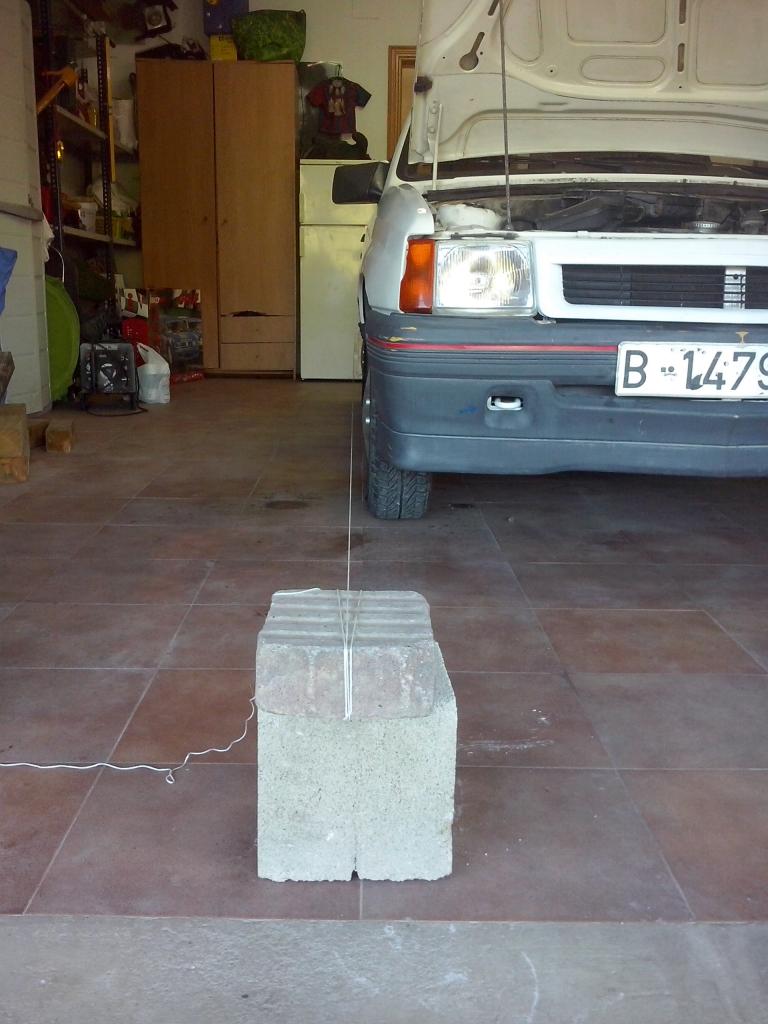 Coger el corsita e ir a los chinos + o - 1euro de gasofa, comprar en los chinos una cuerda de obra, 75centimos,poner las cuerdas y coger el metro ....pues mi diversión ,como a quedado el corsa ...no tiene precio si esto de la crisis nos hace ser mecánicos ,paletas,fontaneros, chispas ,siempre es bueno aprender algo cada dia.Pero lo cierto es que a quedado perfecto ,el volante recto y ahora se nota asentado en la carretera ,y no es nada difícil de hacer.Me e ahorrado 42 euros que me pedían en el norauto .