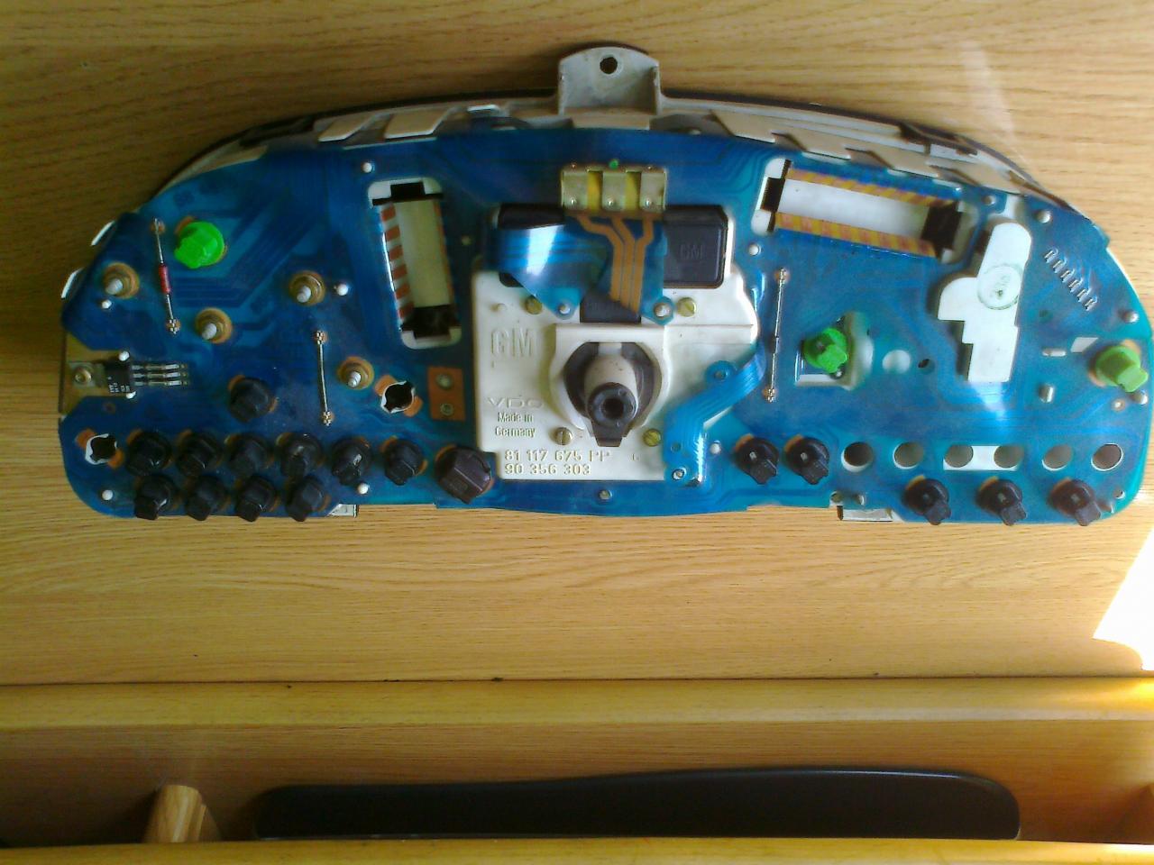 Está en perfecto estado, las esferas no están saltadas y el circuito impreso de la parte trasera esta en perfecto estado. Además incluye transductor y conectores con un cacho de cable. Le falta una de las bombillas verdes que iluminan las esferas.