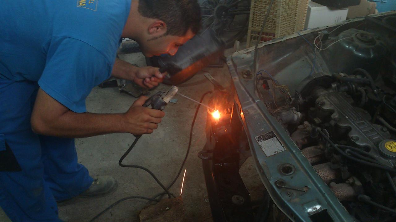 Tuve que cambiar todo el puente, y mi amigo ahí presente soldó INCREIBLEMENTE con electrodo todo el frontal, y quedó de escándalo.