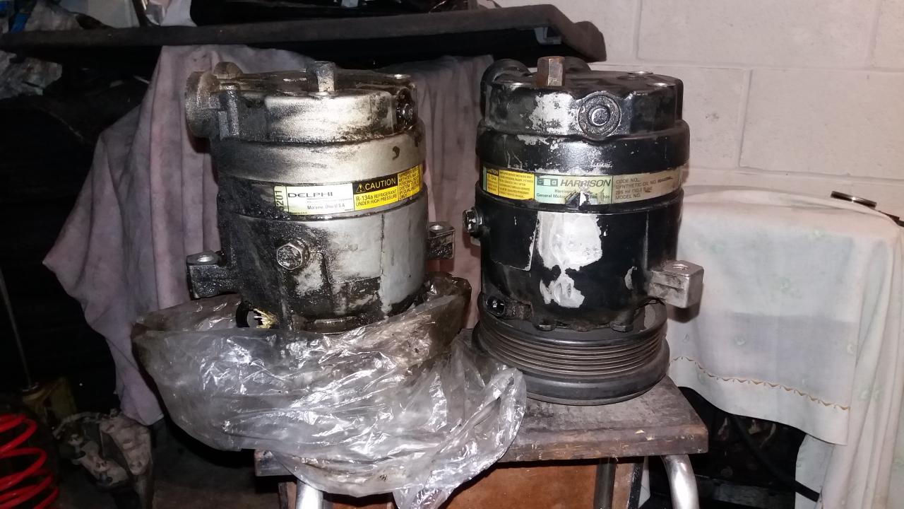 Compresores de aire acondicionado poli V: Se entregan con su soporte cada uno desconozco el estado de ambos (presion tenian cuando se quitaron)