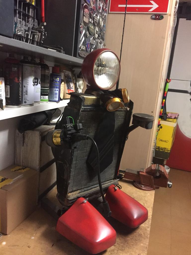 Pude conseguir el radiador de un Seat 600 (el cuerpo) y a partir de ahí juntando piezas de coches (excepto las patas y algún detalle) fue saliendo lo demás…