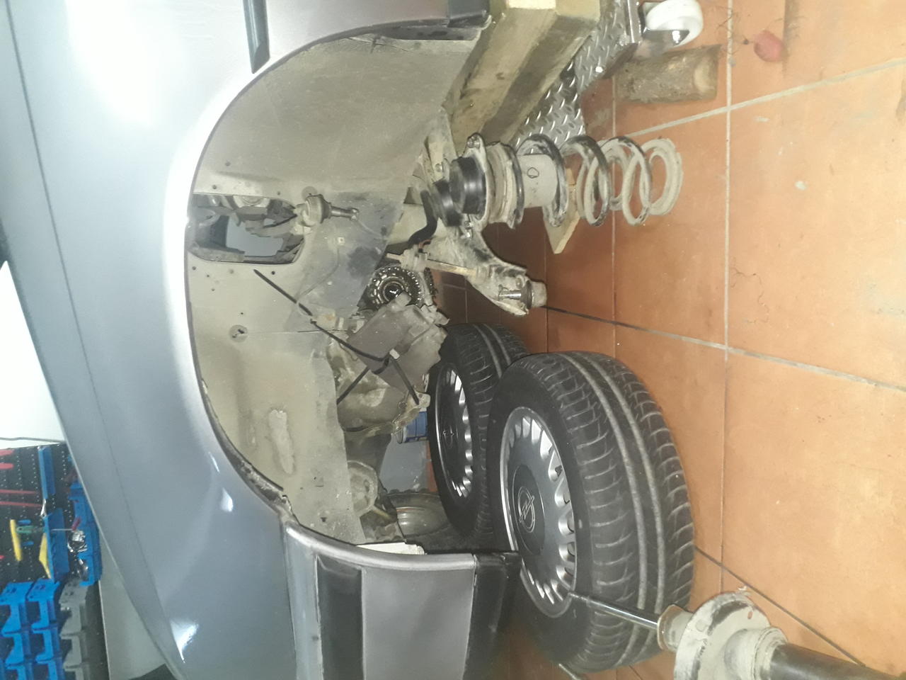 - "trabajo de chapa y pintura", que como se puede ver todavía tiene faena para que quede perfecto, pero probé de estirar un poco la esquina izquierda con un sargento tractel y un árbol pero arrastraba el coche y el morro no se estiraba más..., algún día lo llevaré a un profesional para dejarlo impoluto, pero de momento "es funcional".