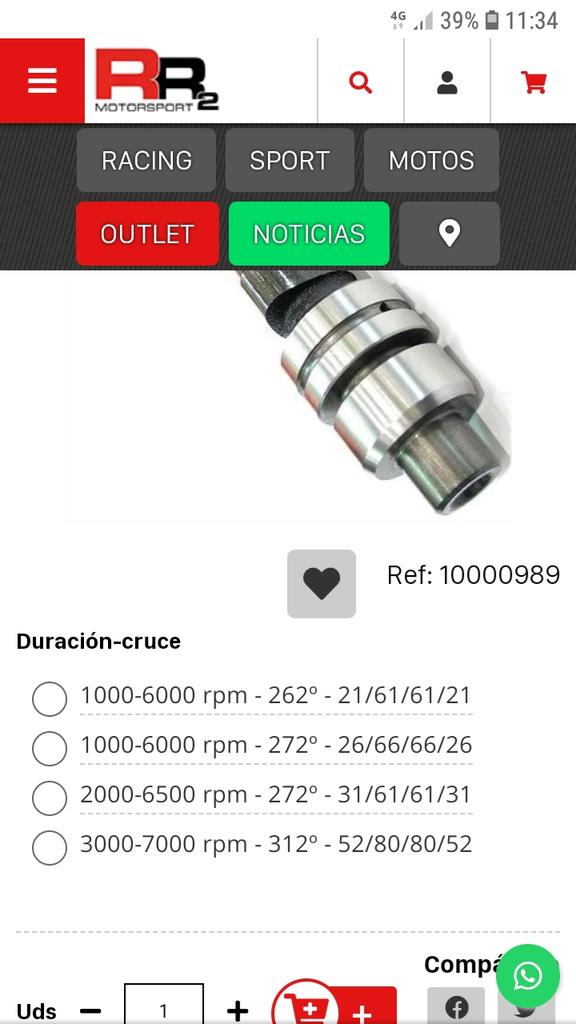 - Árbol de levas más cruzado, de los que he puesto cuál me recomendaríais?, diría que ideal para lo que tengo en mente el segundo de 272 º, tengo que mirar que significa lo de 26/66/66/26. Puede ser: 26 grados adelanto de apertura admisión, 66 grados retraso cierre admisión, 66 grados avance apertura escape y 26 grados retraso cierre escape??