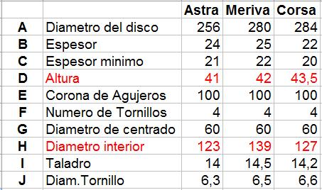 En cuanto a los discos yo valoré tambien los discos de 284, pero al ver que eran mas finos (280mm de meriva es de 25mm y el de 284mm de corsa D es de 22mm) preferi montar algo mas gordo y aunque dejara algo mas de pastilla sin morder. Sobre todo por que esas pinzas trabajan con discos de 25mm, al meter unos de 22mm diria que el piston tiene que desplazarse mas, aunque sea una distancia de milimetros. No lo se, quiza este diciendo una tonteria pero si la vida util de los discos de 288 es de 25 a 22mm por algo será, quiza hacerle trabajar con un disco de 22mm desde inicio no sea lo mas adecuado.