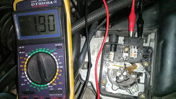 Entonces entiendo que lo que estas midiendo es la resistencia que marca el cursor con el motor en marcha al ralentí...y debe estar sobre los 2K.