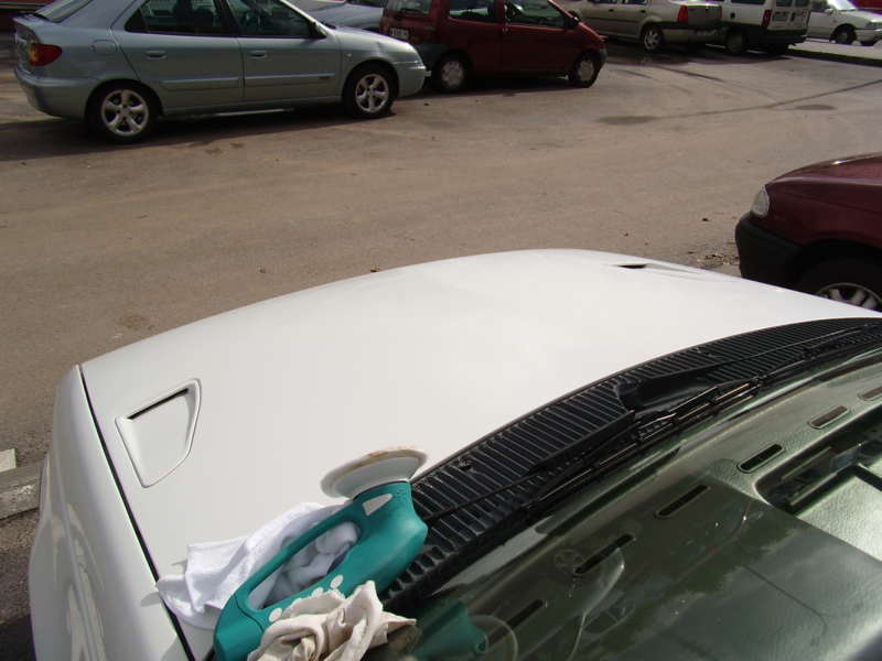 Y ahora una fotillo del techo pulido (por mi padre, la foto y el pulido) mientras yo limpiaba la moqueta del maletero y la parte donde va la rueda de repuesto (que estaba a 1 con poco de presión...)
