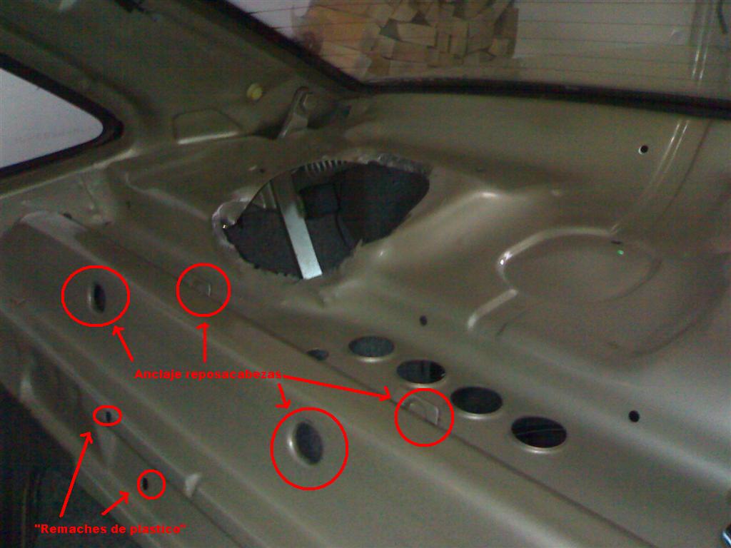 3º Se sacan los "tacos" de plastico donde se sujetan los reposacabezas, apretando en la parte que está por dentro del maletero.