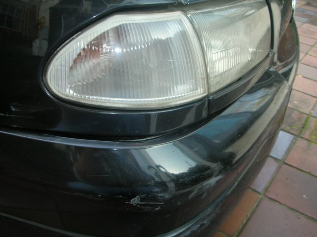 Pues eso. Resulta que hace un mes ya más o menos, durante las pocas veces queda el coche aparcado en la calle, al volver me di cuenta de que tenía la defensa delantera sacada de sitio por las 2 curvaturas. Así está ahora: