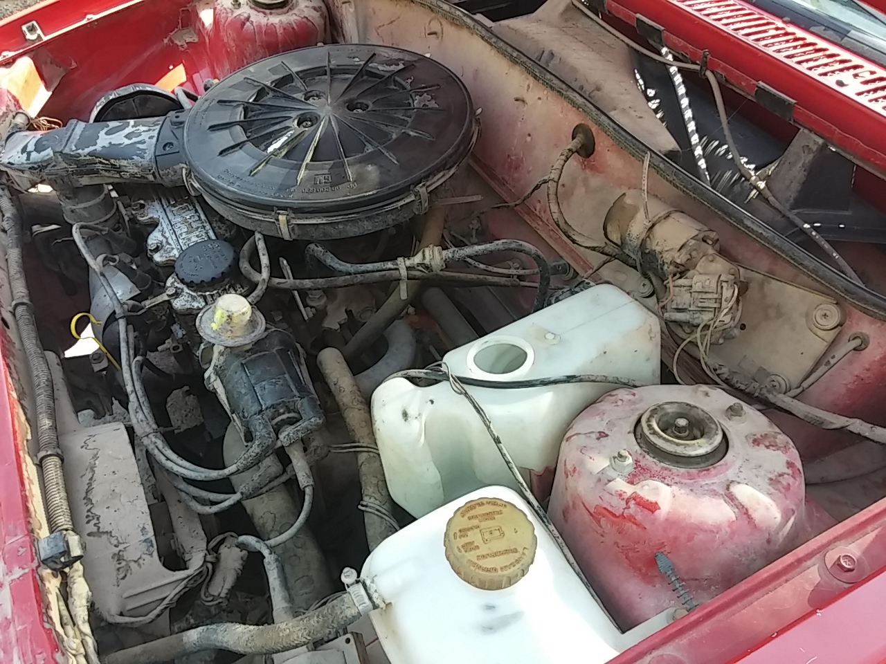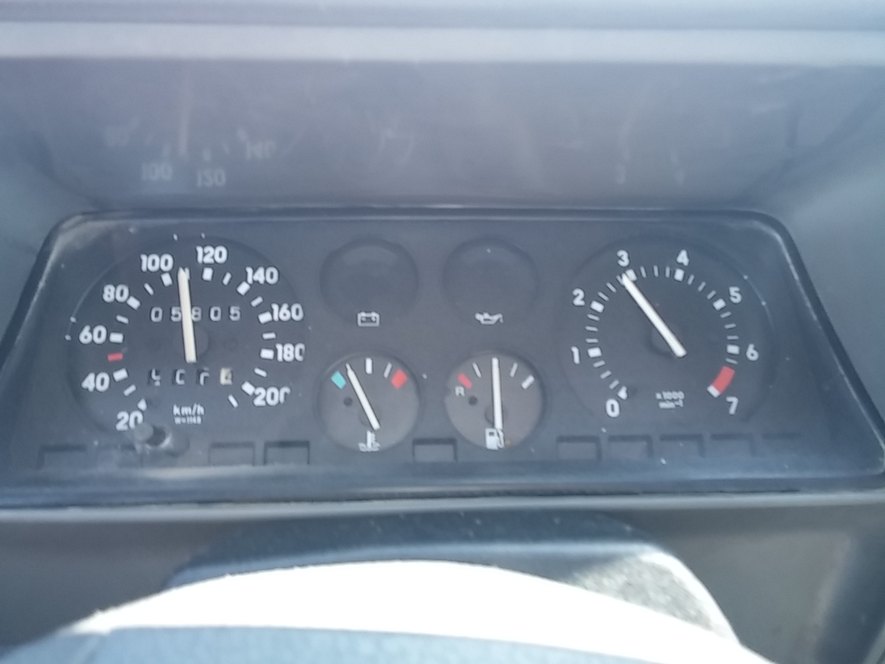En Albacete que me planto, y lo pruebo. Ruido a rodamiento, alternador que no carga del todo, una homocinética que suena al girar, la típica fuga de aceite por la tapa de balancines, roña para parar un tren, corrosión bajo la batería... pero un motor sano, un embrague perfecto, techo de lona casi perfecto, 102.000 km que parecen reales, caja cambios bien y eléctrico todo funcionando.