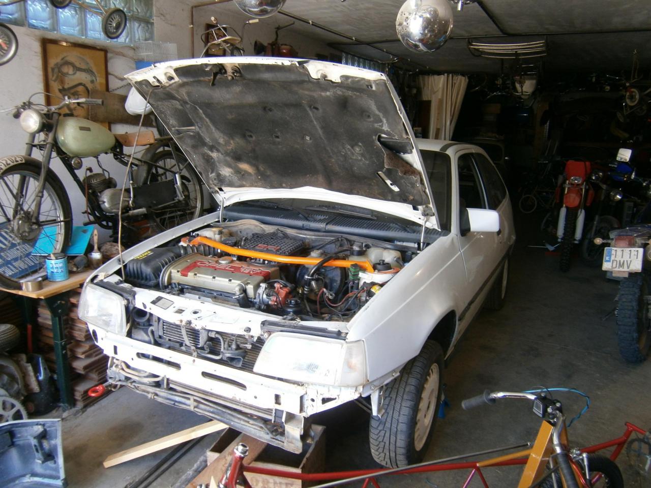 bienvenido,seve muy bien ese kadett y bonita moto antugua la que esta en la pared