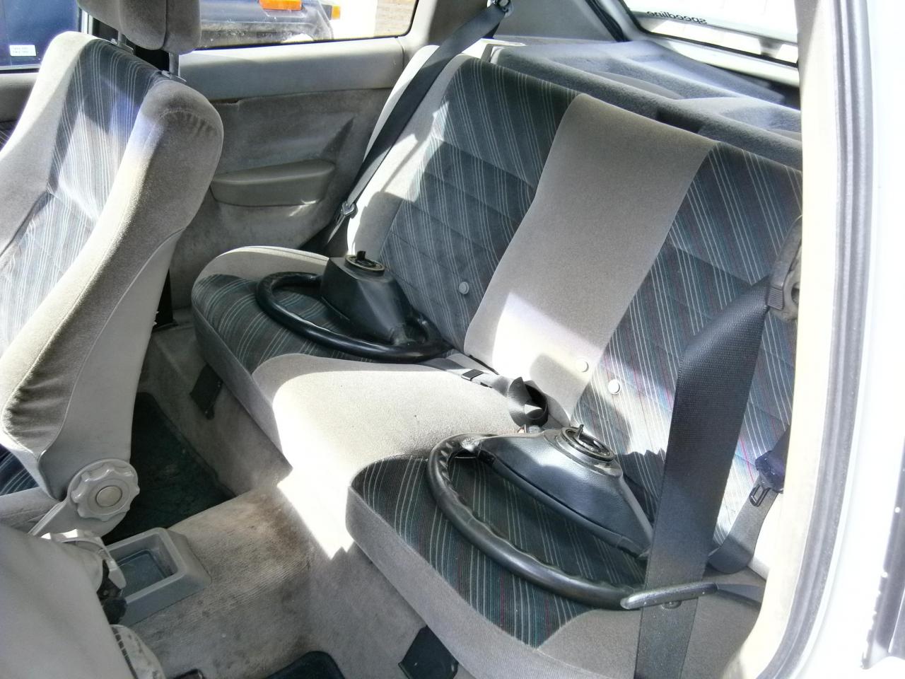 Respecto al interior cambiaría un par de cosillas, los pedales, el volante (por lo menos consigue la chapa de GSI 16v para ponérsela en la piña, en vez de esa de SA jaja) y luego también le quitaría los embellecedores de madera.