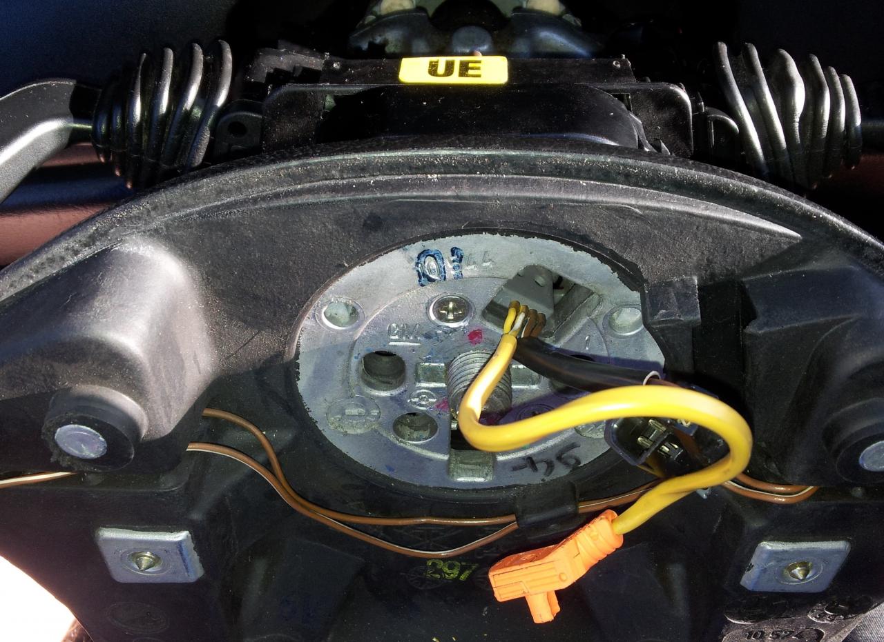 es fácil ya que los colores de los cables son los mismos, los amarillos corresponden al airbag y los marrones al claxon. De momento dejamos de lado los 2 que corresponden a los mandos.