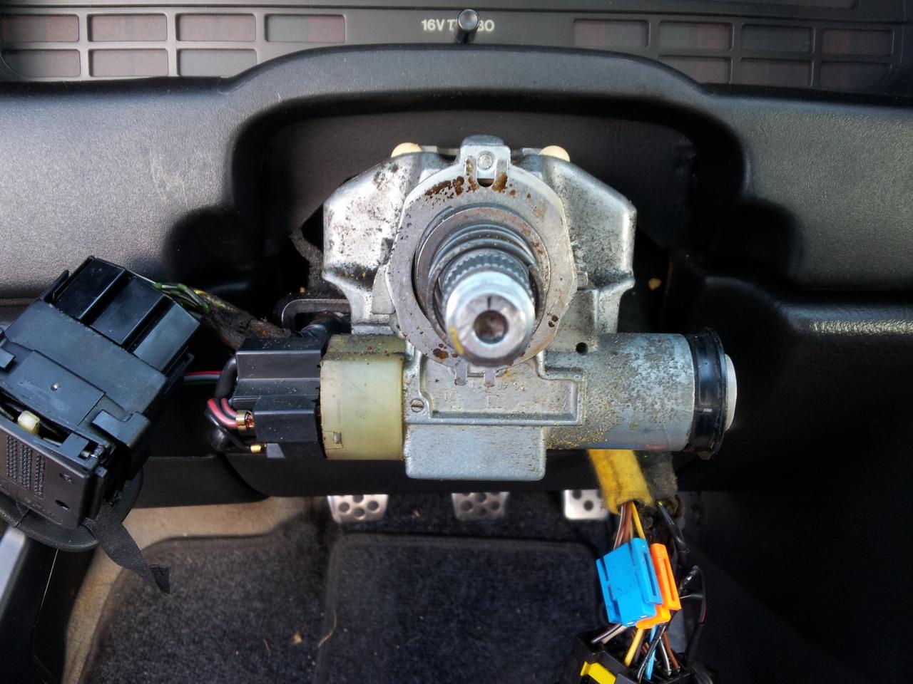 Sacar el volante me costo un triunfo pero con un poco de maña paciencia y mecagoentales varios acabo saliendo. Desconectamos el carrete y todo fuera.