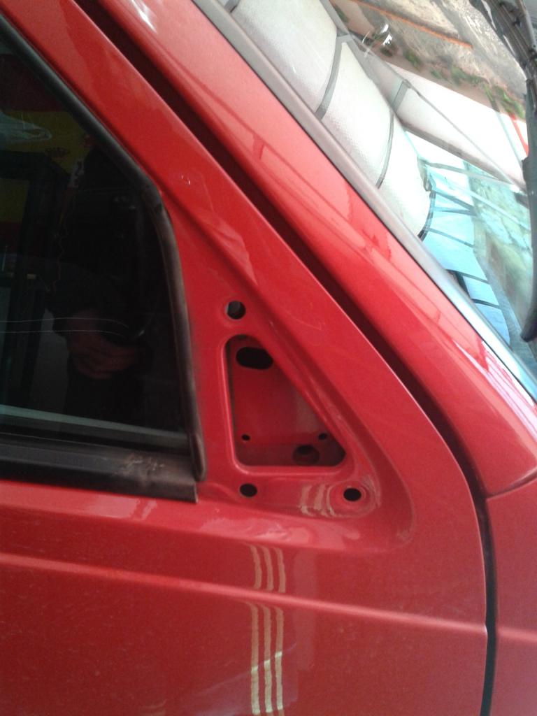 Sacamos el panel de puerta y el espejo retrovisor manual, sale quitando la tapa interior y desatornillando los 3 tornillos que lleva, luego ya metemos el eléctrico: