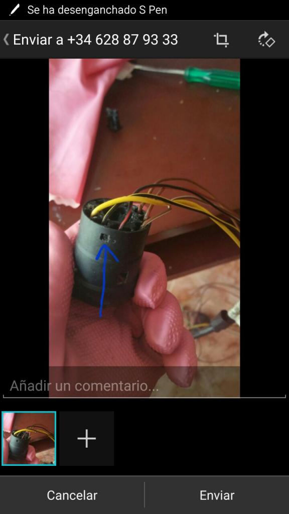 Una vez llegado aquí pasaremos los 2 cables al interior de la puerta, (fotos donadas por el forero REMINTONSTIL, con su consentimiento y a petición suya se incluyen en el brico) los podremos pasar por el conector del pasamuros, aquí mostramos como se haría: