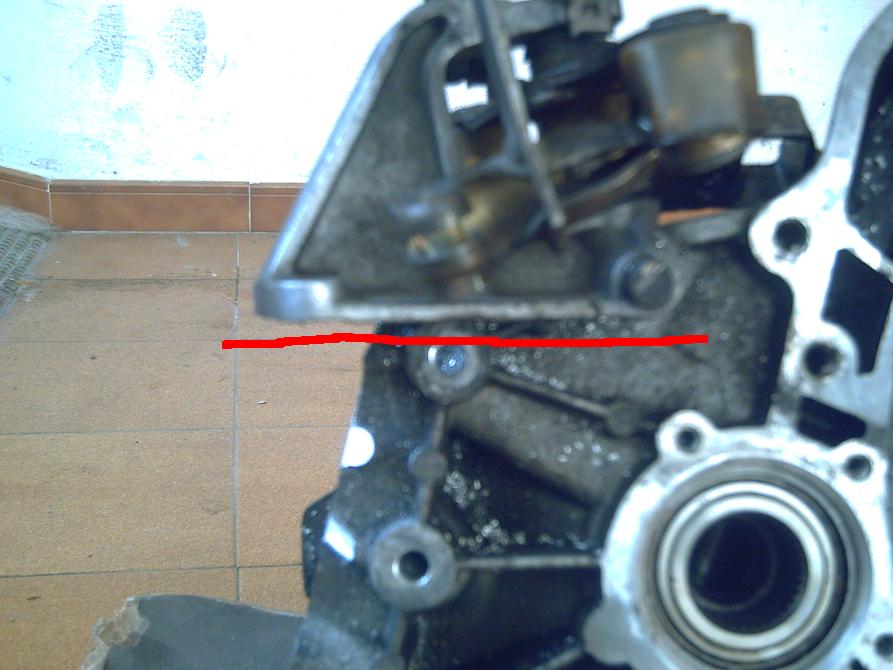 Ya se puede poner el taco, pero surge otro problema: no atornilla a fondo, porque pega con dos esquinitas de caja de cambios. Solucion le doy el corte: