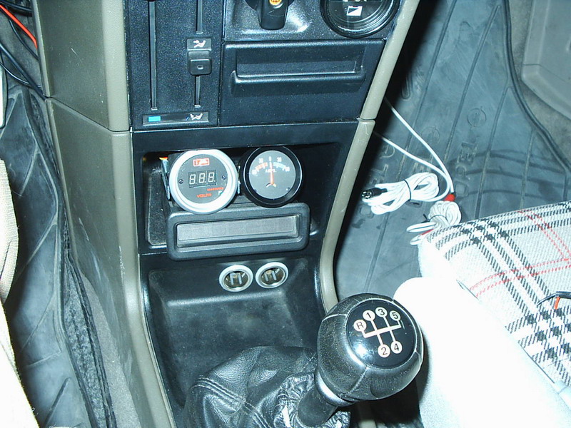 La consola de abajo con los dos mecheros que le he puesto (quitados de sendos Opel). Servirán para alimentar el cargador del móvil y la pda: