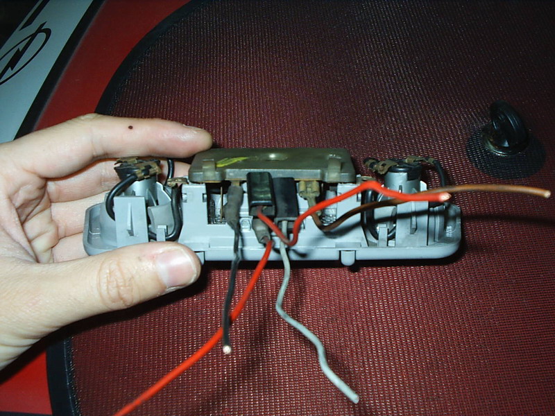 Aqui se ve el engendro de montaje que tengo bajo el plafón para alimentar la luz de la guantera y la del parasol derecho.