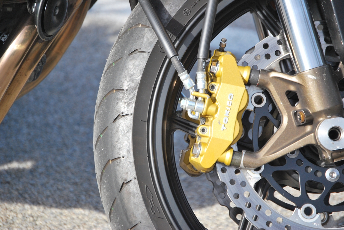 Aquí el detalle de las pinzas, también de ZX-6, radiales y bastante más potentes que las de serie.