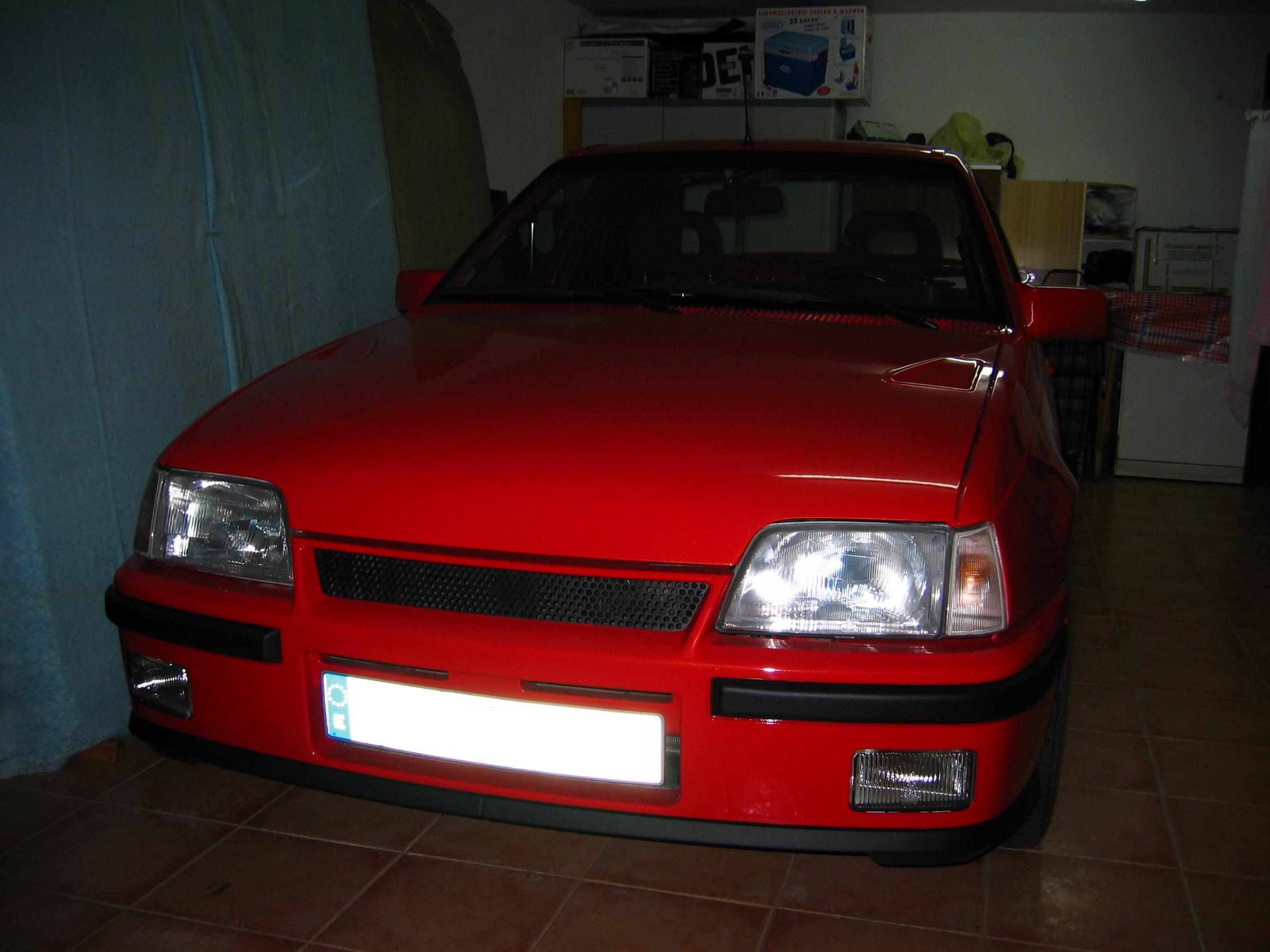 lleva las gantas del calibra y está bajado de suspensión,lleva el paragolpes delantero del gsi con sus antinieblas(todas las opticas tanto delanteras como traseras son nuevas),las taloneras del gsi 4p,los pilotos traseros son del cabrio(doble luz marcha atras),los antinieblas traseros son del gsi y van incrustados en el paragolpes(aun sin montar), y el paragolpes trasero está pintado y alisado para mantener la línea con el delantero.