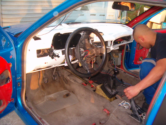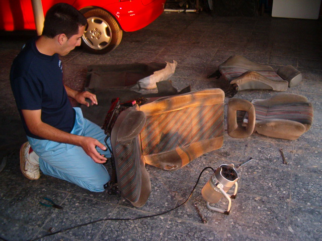 Hemos cambiado, la tapiceria del suelo completa, he cambiado la parte de abajo de un sillon por la otra, he conectado los cables de los ventiladores, montados paneles de puertas, maletero, agarraderas, quitasoles, etc. Mañana seguiremos y os ire mostrando como va quedando el coche.