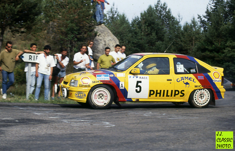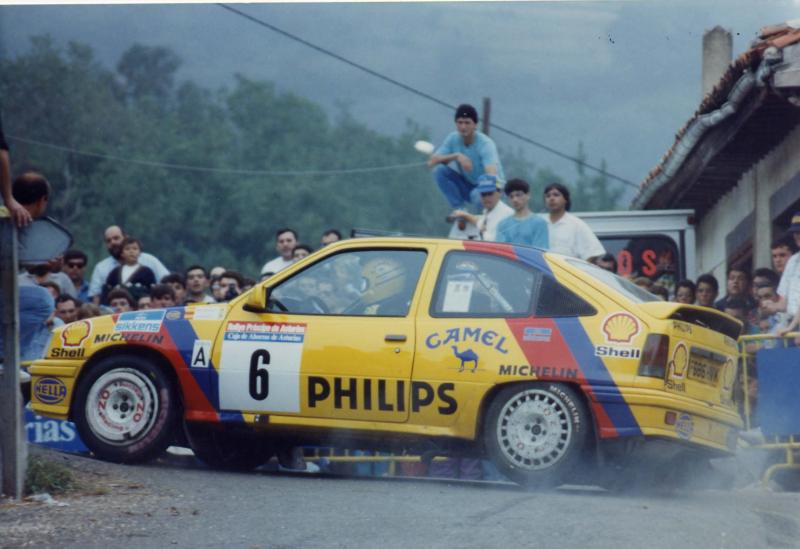 En las fotos que te pongo, aparecen el kadett gsi8v que conducía beny fernandez, y luego alguna de los 16v de Borja Moratla y Beny Fernández. La duda que me surge ahora es si cambiaban el color del interior dependiendo de la decoración exterior, ya que en varias fotos parece verse que las barras son grises y en una en la que aparece beny fernandez empujando el kadett, las barras parecen de color negro.