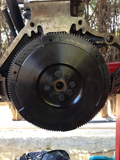tambien coloque el volante de inercia aligerado , despues de colocarle la corona.Otro cambio fue el tornillo del cigueñal , el cual coloque nuevo.
