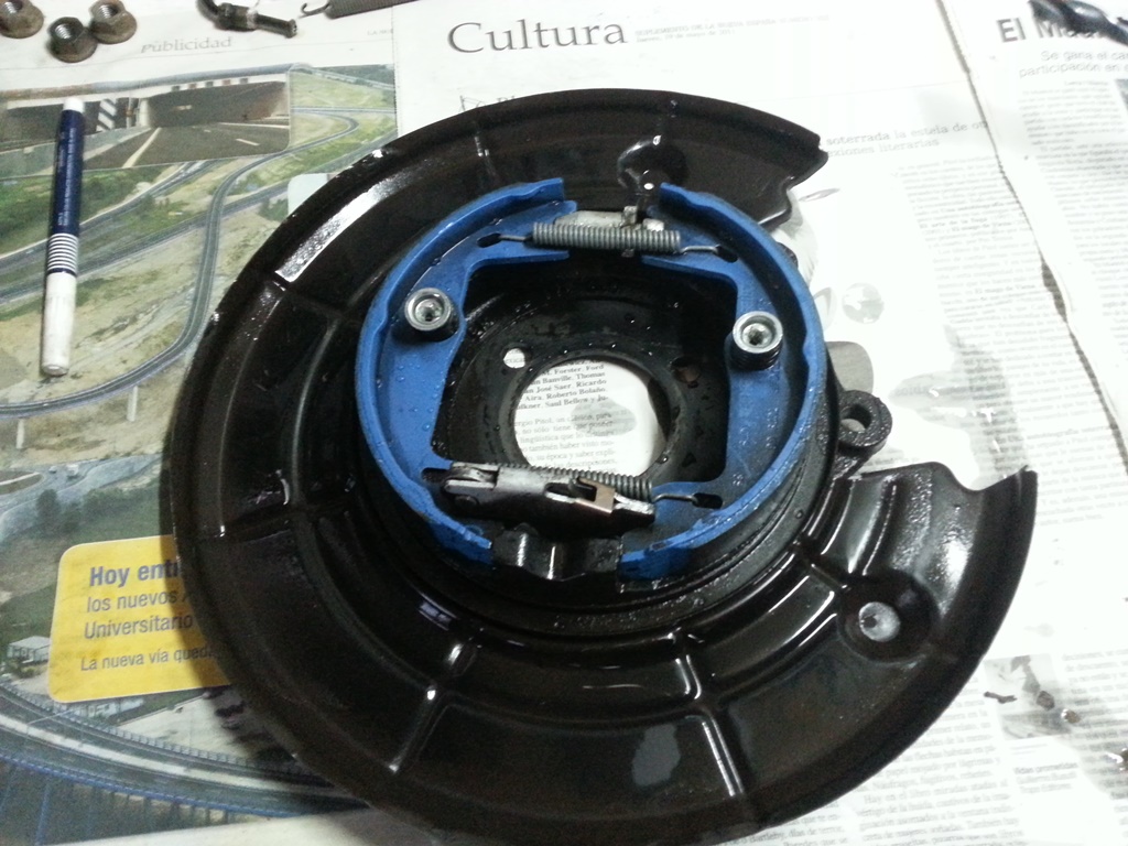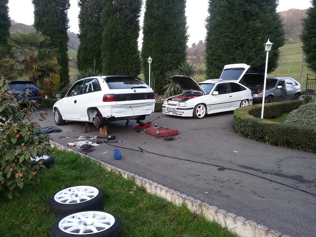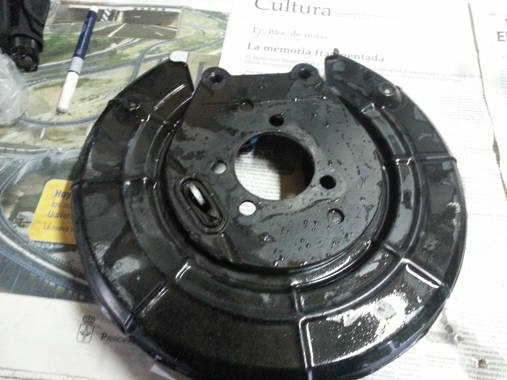 Empiezo con el kit trasero ..donante : vectra B , plug and play ?? los cojon....jajaja...el kit trasero de vectra B de 5 tornillos ( me refiero a todo el conjunto , tambor/disco , buje y pinza ) no es plug and play para un astra gsi , lo conseguí adaptar , pero no es tirarlo allá ...la posición al ponerlos es invertida al astra , quedando el sistema del freno de mano debajo , en vez de por arriba , por lo que pega en el puente y no se podría poner el cable del freno de mano...única solución que encontré? ..retaladrar el plato donde va el buje metido y sus tornillos , de manera que se invierte el conjunto quedando el freno de mano arriba. Funcionó!! , aun así , la pinza de freno queda más baja que en unos originales , y el latiguillo de freno hay que retorcerlo , ya que tiene entrada por abajo , y no por arriba como de serie.
