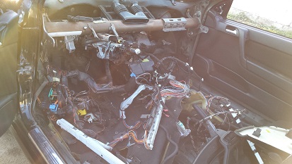 bueno,la tarde a sido productiva entre comillas,ya tengo practicamente toda la instalacion electrica interior al descubierto.me falta un trozo delantero que va por debajo de la moqueta y no soy capaz de sacarla sin cortar,y en el donante me da igual,pero cuando tenga que hacerlo en el mio por otra parte alguien sabe como se separa el cableado del interior al motor?