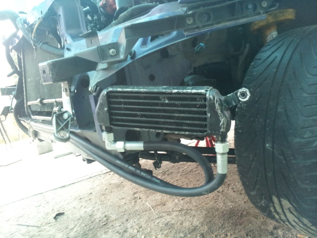 Aquí se puede ver también los tubos nuevos para el radiador de aceite y su nueva casa..